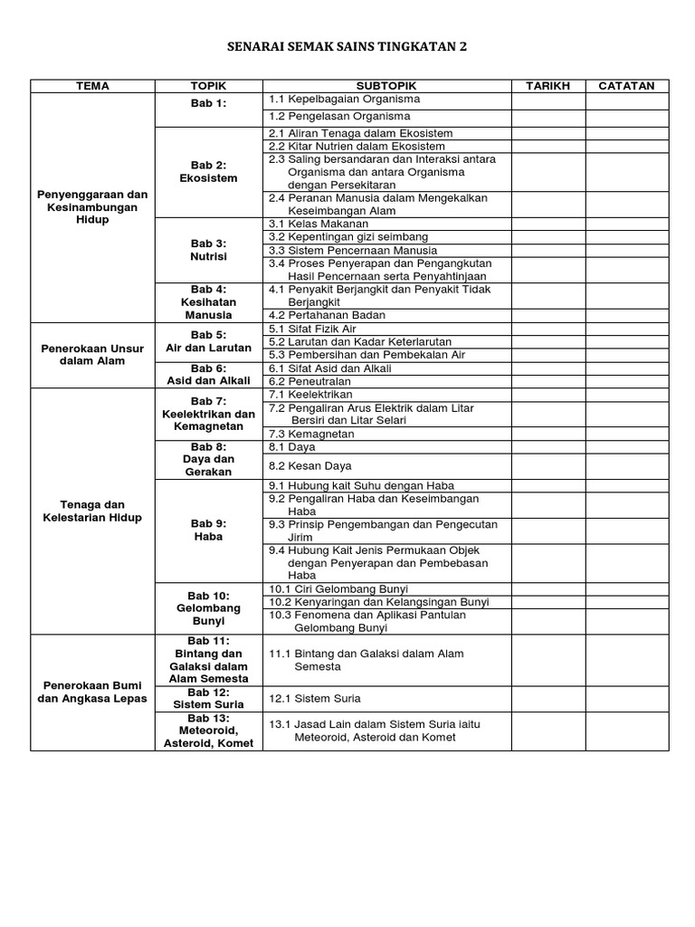 Senarai Semak Sains Tingkatan 2 Pdf