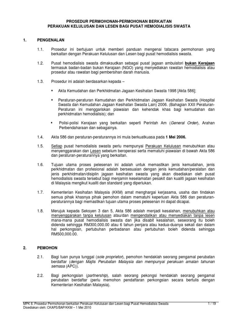Boleh emelkan kepada ckapsmohgovmy untuk semakan status. Senarai Semak Borang 3 Pusat Hemodialisis Swasta Pertubuhan Januari 2014 11 SENARAI SEMAK BORANG 3 PUSAT HEMODIALISIS SWASTA PERTUBUHAN Nama Premis. Pusat Dialisis Alamat Bandar Negeri Hubungi Tarikh Lesen Tamat.