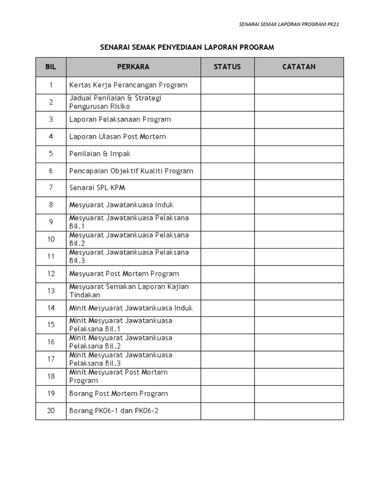 Laporan Status Kelas word Download. Senarai semak rentasan mentoring praktikum serta impaknya terhadap kualiti guru pelatih. Permohonan lanjutan tempoh sah laku plks pekerja asing hendaklah dikemukakan berdasarkan senarai semak seperti.