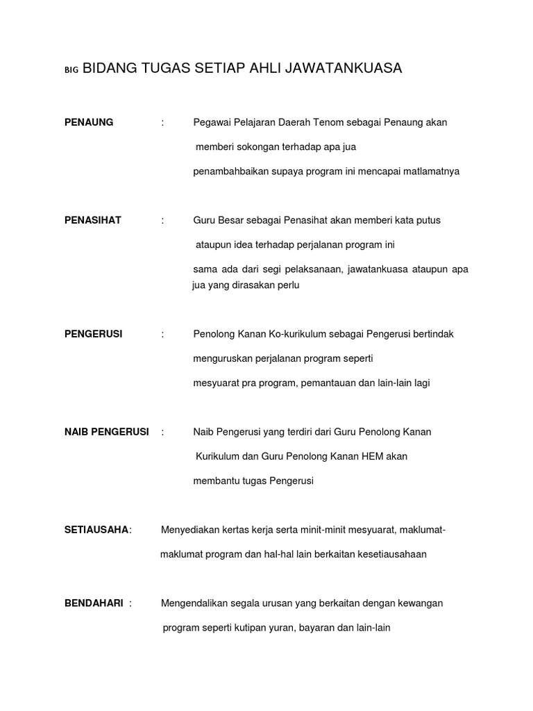 Big Bidang Tugas Setiap Ahli Jawatankuasa Pdf