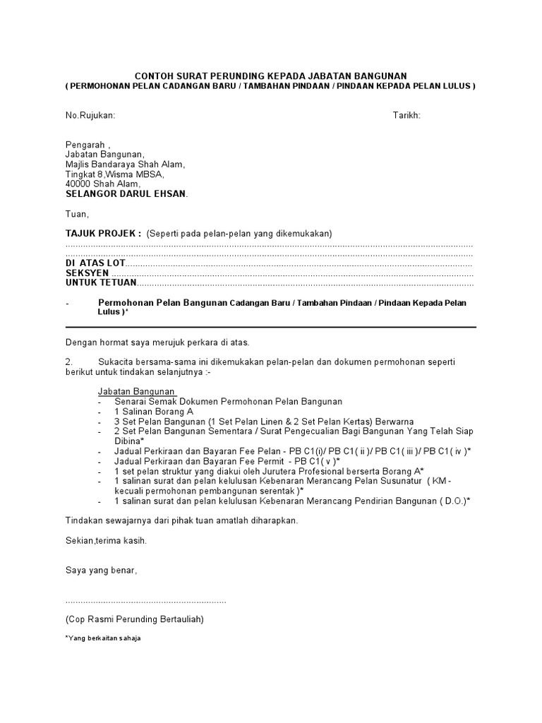 Contoh Surat Perunding Kepada Jabatan Bangunan Pdf
