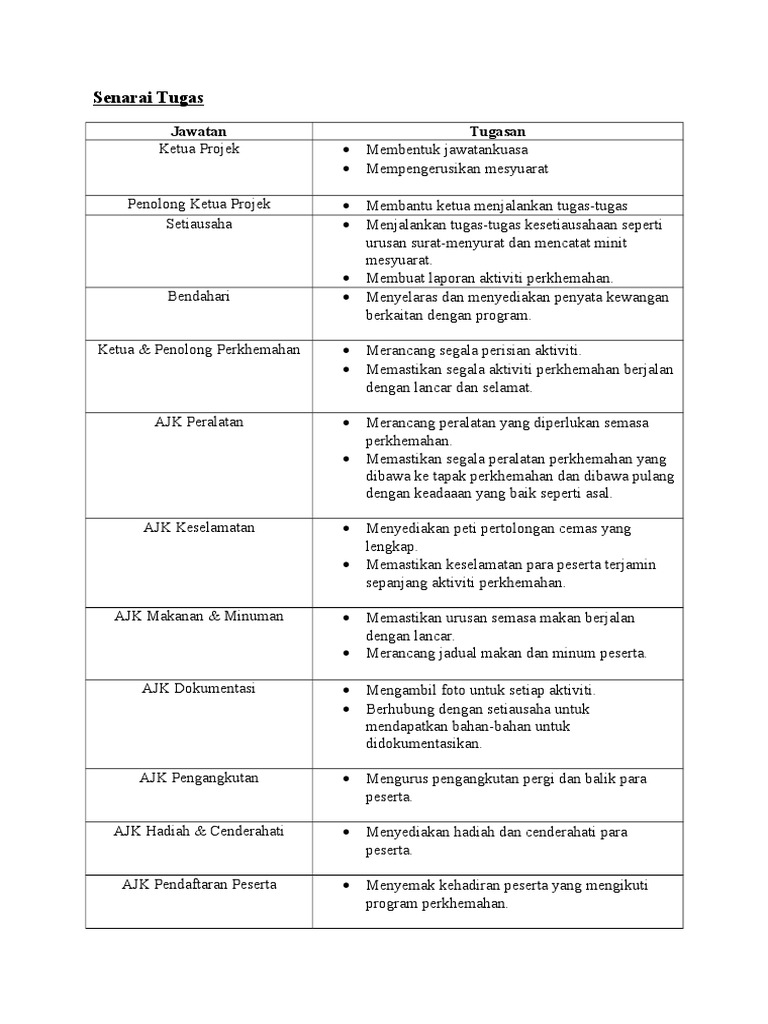 Dokumen senarai tugas. Memperakui cabutan dan salinan dari rekod Koperasi menurut Peraturan bersama setiausaha melalui satu akuan yang bertarikh dan ditandatangani. DOKUMEN RUJUKAN TATACARA PENYEDIAAN SOALAN LAZIM KUIZ MODUL 1 5 2 6 3 7 4 8. Tugas GurupdfTitle Senarai Tugas Guru Author.