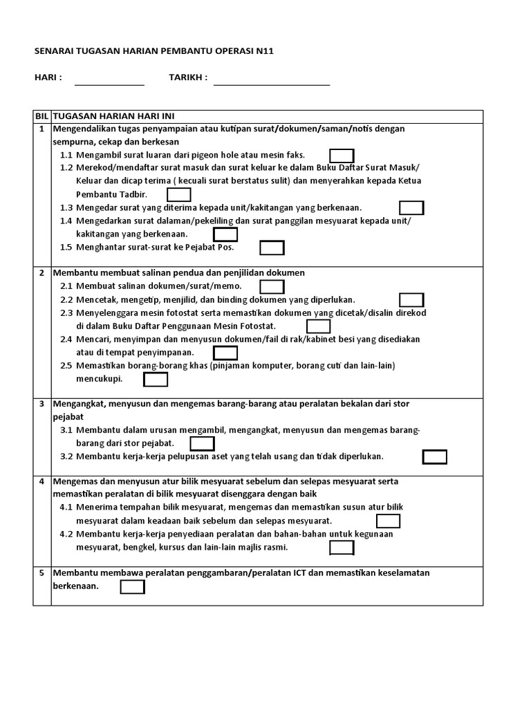 Senarai Tugas Jawatan Muka Surat ii Pegawai yang bertukar perlu menyenaraikan tugas-tugas sepertimana yang tercatat di dalam senarai tugas rasmi jawatan. Lompat ke Halaman. Bahagian pembangunan modal insan penyelidikan bil.