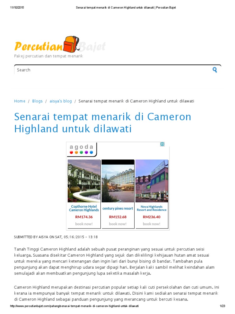 Senarai Tempat Menarik Di Cameron Highland Untuk Dilawati Percutian Bajet Pdf