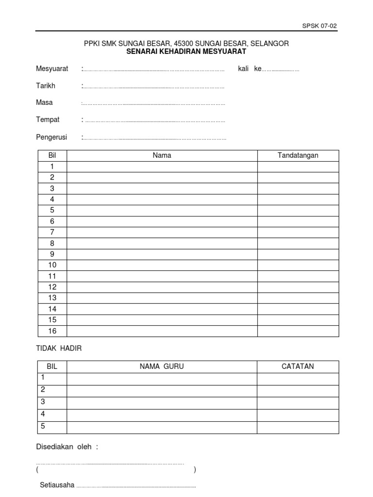 Borang Pk 07 2 Senarai Kehadiran Mesyuarat Doc Google Drive