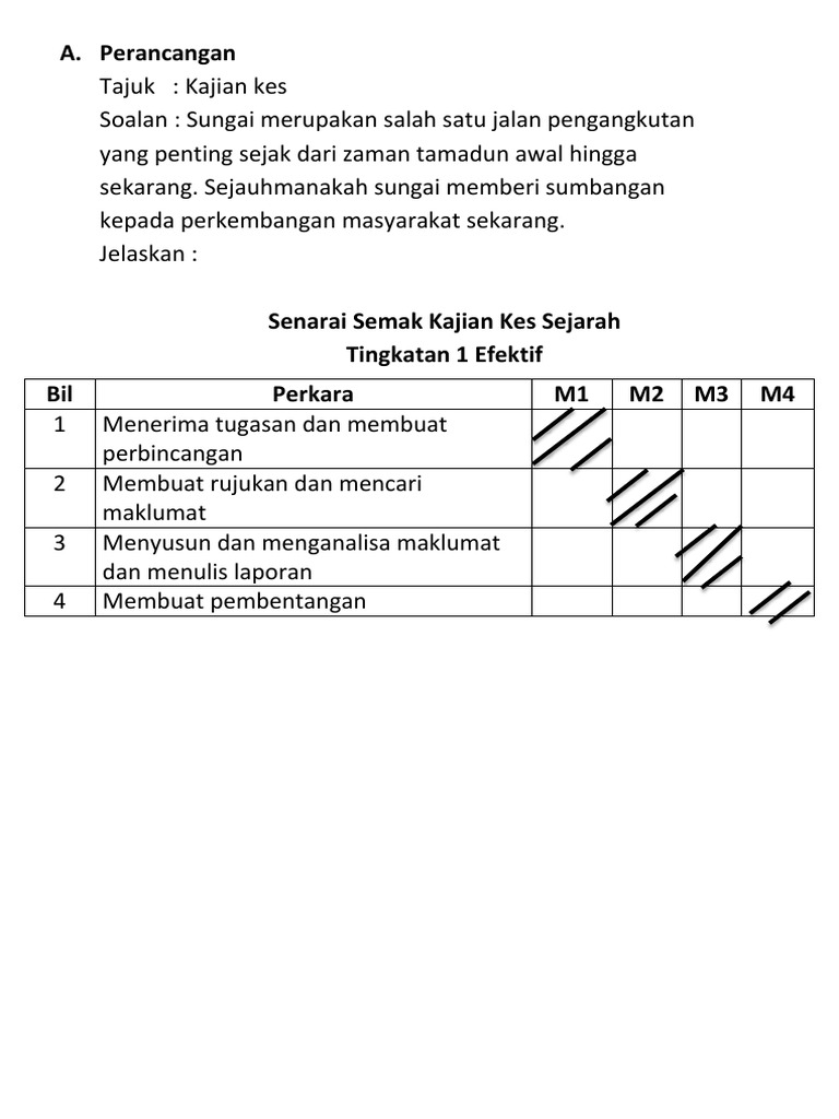 Kajian kes sejarah tingkatan 2 2018 docx smk taman bukit maluri kerja kursus tingkatan 2 2018. AssalamualaikumNama saya Rahayu Mazuin dari 2 Al Farabi ini hasil kajian kes sejarah saya saksikanlahkesultanan melayu melakaJADUAL KERJA132Perancangan -jadual kerja -objektif kajian -kaedah kjian -tajuk Proses awalMenyediakan kerangka kasar penulisan465Pelaporan -Pengenalan -Menjelaskan ciri-ciri lokasi yg strategik yang dipilih oleh Parameswara. Guru dapat mengetahui tentang kelemahan dan kekuatan serta potensi seseorang murid.