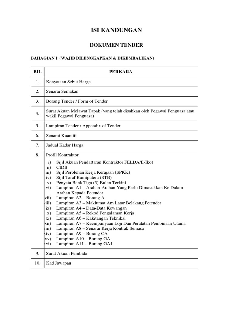 Sub-dokumen yang dianggap sangat penting adalah syarat-syarat kontrak termasuk artikel perjanjian yang juga menyenaraikan kandungan dokumen kontrak. Lampiran h 19 19 skop kerja pembersihan lampiran i 20.