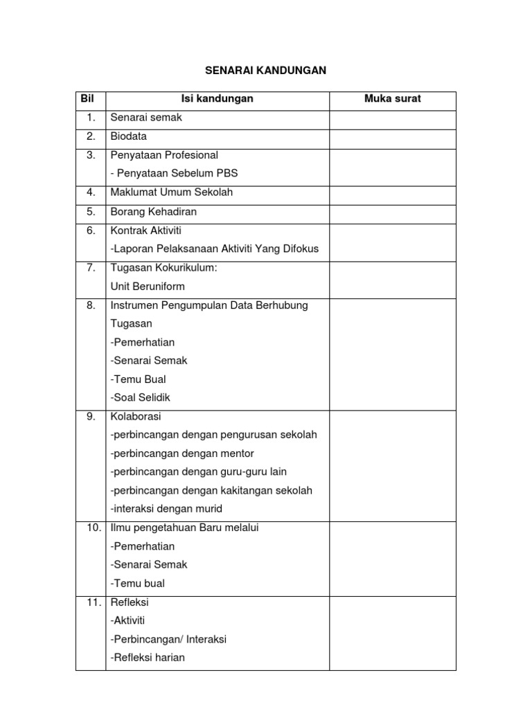 Senarai Semak Isi Kandungan Ppgb Pdf