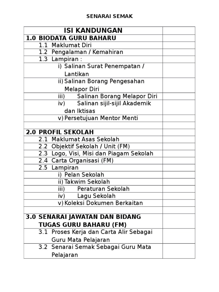Kandungan senarai semak. Laporan Pemeriksaan Kesihatan Pelajar DKP MEDGMIAFSA-AR 4. Share SENARAI SEMAK FAIL PANITIA BM 2021 everywhere for free. Biodata dan maklumat guru.