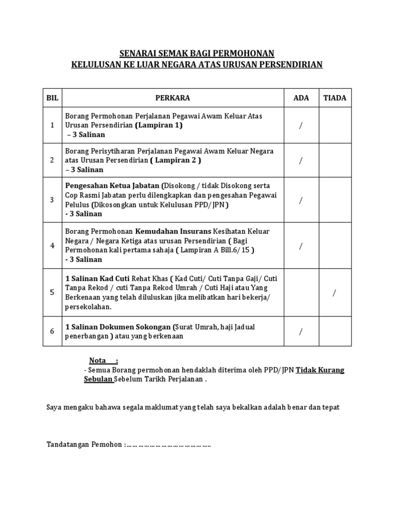 Senarai Semak Bagi Permohonan Lawatan Keluar Negara Pdf