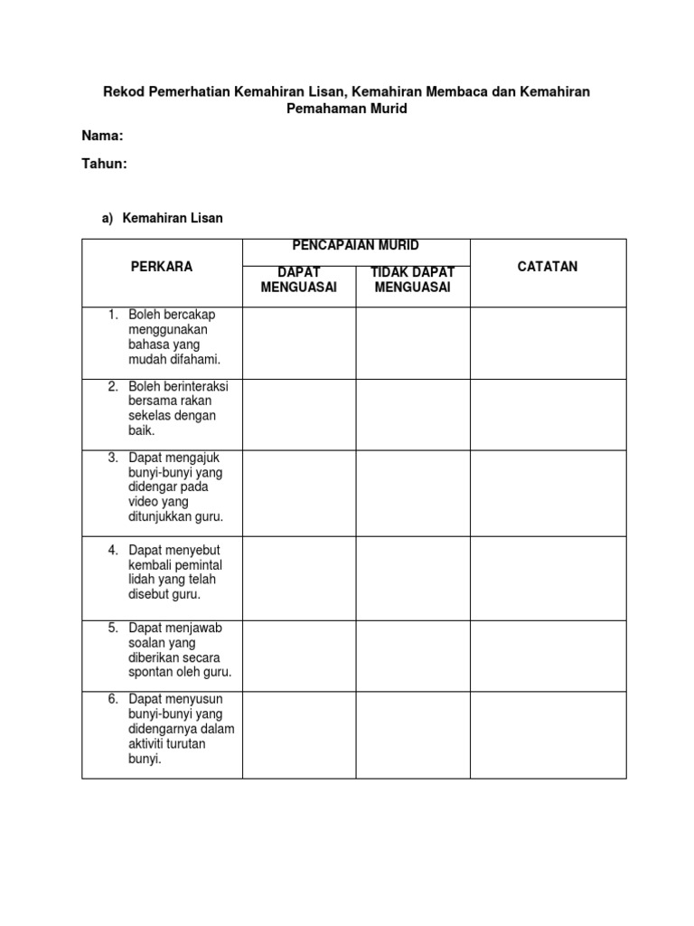 Basikal gerabak karipap keledek kerepek telefon selipar seli. Pencapaian dan kebolehan yang tinggi dalam kemahiran membaca dan menulis pasti dapat meningkatkan penguasaan pembelajaran murid dalam Bahasa Melayu dan mata pelajaran tertentu. Standard mengikut tahap kemahiran.