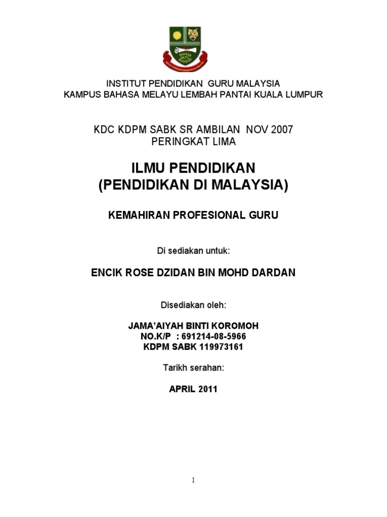 Tugasan Kemahiran Profesional Guru Pdf
